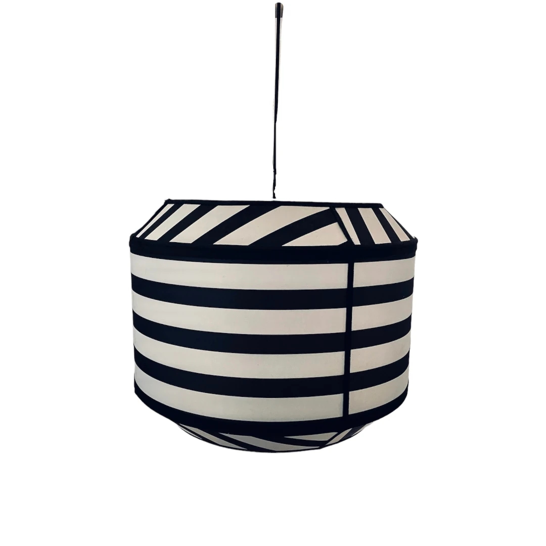 La Lampada a Sospensione Stripes unisce funzionalità al design. Con la sua struttura in PVC rivestita esternamente in tessuto 100% cotone stampa Christian Lacroix ed internamente in cotone nero opaco, aggiungerai esclusività ed eleganza a qualsiasi ambiente. Dotata di cavo elettrico nero e borchia coprifilo nera, con potenza massima 100 W, potrai illuminare ed abbellire la tua casa, ufficio, albergo, B&B. Larghezza 40 cm altezza 33 cm, cavo elettrico 90 cm.