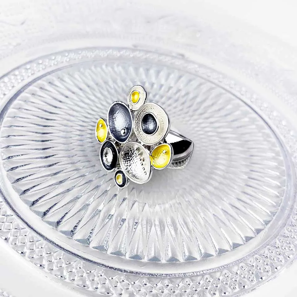 • Placcato Argento e Smalto Giallo e Grigio. Rifinito a Mano
